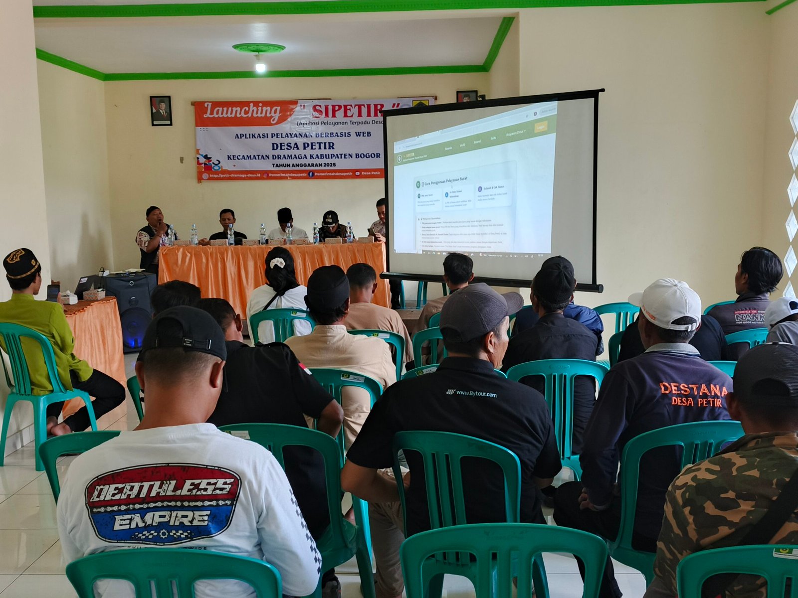 BOGOR, KORAN INDONESIA – Pemerintah desa Petir, Kecamatan Dramaga, Kabupaten Bogor Launching Web SIPETIR, aplikasi berbasis digital dalam rangka peningkatan