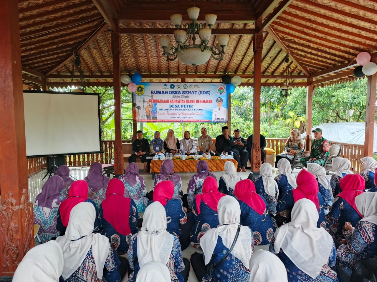 BOGOR KORAN INDONESIA – Ratusan kader mengikuti kegiatan Rumah Desa Sehat (SDR) yang diselnggarakan Pemerintah desa Petir, Kecamatan Dramaga, Kabupaten Bogor, dalam rangka peningkatan kader kesehatan. Acara tersebut dilaksanakan di Joglo Petir pada Kamis (11/09/2025).
