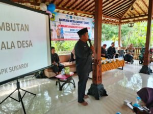 Kades Petir H Sukardi saat memberikan motivasi kepada ratusan kader Posyandu dalam forum Rumah Desa Sehat/Asof/koranindonesia.net/