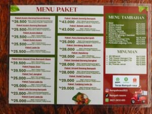 Selain itu, banyak pula menu paket lainnya yang bisa dipilih sesuai selera masing – masing serta aneka minuman bisa dilihat di daftar menu paket di bawah ini ;