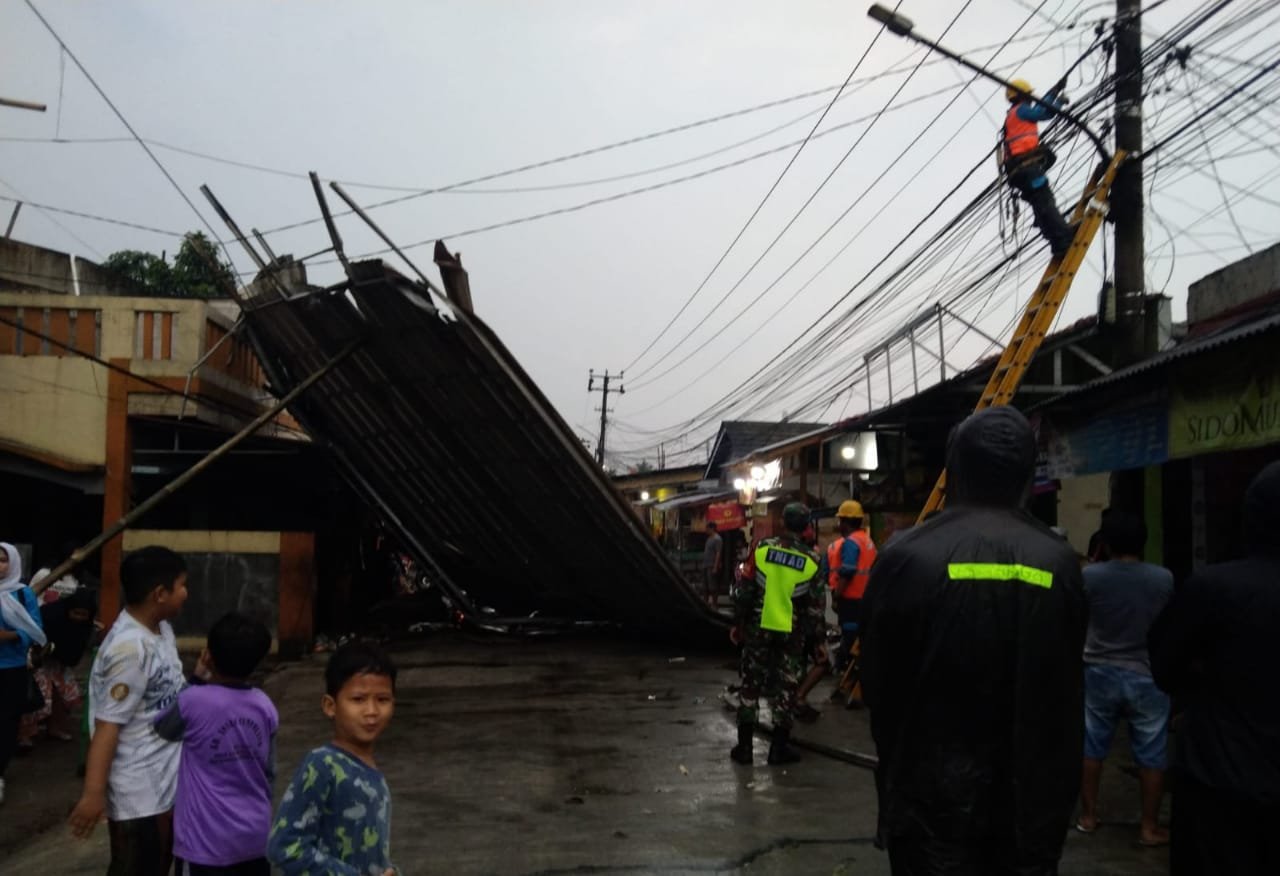 BOGOR, KORAN INDONESIA – Hujan deras disertai angin kencang yang mengguyur kawasan Bojongrangkas, Kecamatan Ciampea, Kabupaten Bogor pada pukul 16.00 WIB membuat cemas dan panik sebagian warga, pasalnya dalam peristiwa tersebut mengakibatkan atap sebuah bangunan toko elektronik terlepas disapu angin kencang pada Rabu, 09/10/2025.