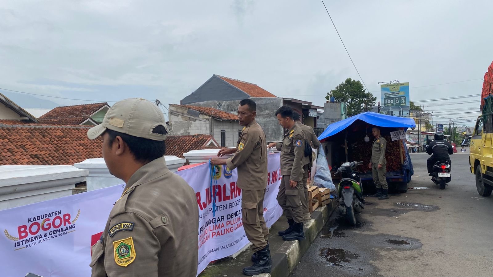 Kamis Manis : Satpol PP Dramaga Bogor Tertibkan PKL di 2 Lokasi Berbeda dan Pasang Spanduk Larangan Berjualan PKL