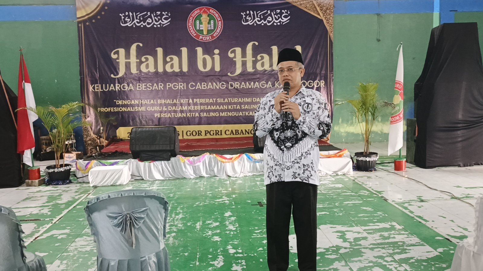 Halal bihalal PGRI Kecamatan Dramaga dihadiri oleh para tenaga pendidik, pengurus organisasi, serta unsur pemangku kepentingan diantaranya turut hadir Ketua Komisi IV DPRD sekaligus Ketua DPD Partai Keadilan Sejahtera (PKS) Kabupaten Bogor