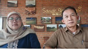 Caption : Pengawas Yayasan Sukamulya, H Suhendar didampingi staf ahli, Siti Asih Wardani/Asof/koran Indonesia//