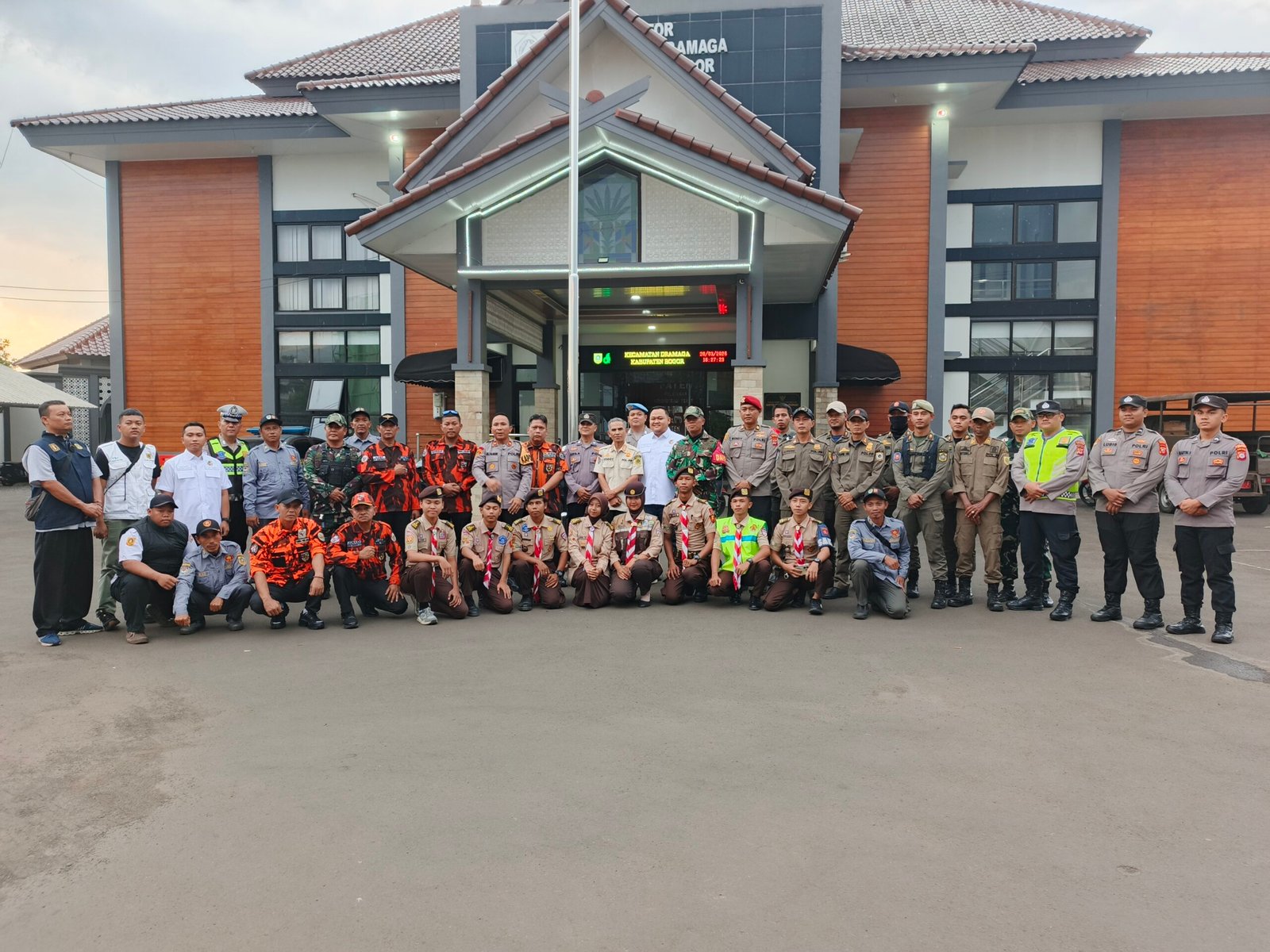 BOGOR, KORAN INDONESIA – Polsek Dramaga Polres Bogor bersinergi dengan TNI, Ormas Pemuda Pancasila, KNPI, Linmas desa dan Pramuka menggelar pasukan gabungan pengamanan lebaran Idul Fitri 1447 H, di halaman Kantor Kecamatan Dramaga pada Jumat, 20/03/2026 petang.