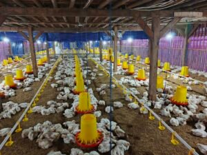 Selanjutnya Ia menjelaskan bibit ayam Pedaging yang ditebar di atas bangunan kandang dua lantai sebanyak 8 ribu ekor, dan saat ini baru berusia hampir tiga Minggu, dan pertumbuhannya cukup bagus, rata – rata ayam sudah memiliki bobot 600 gram sampai 900 gram.