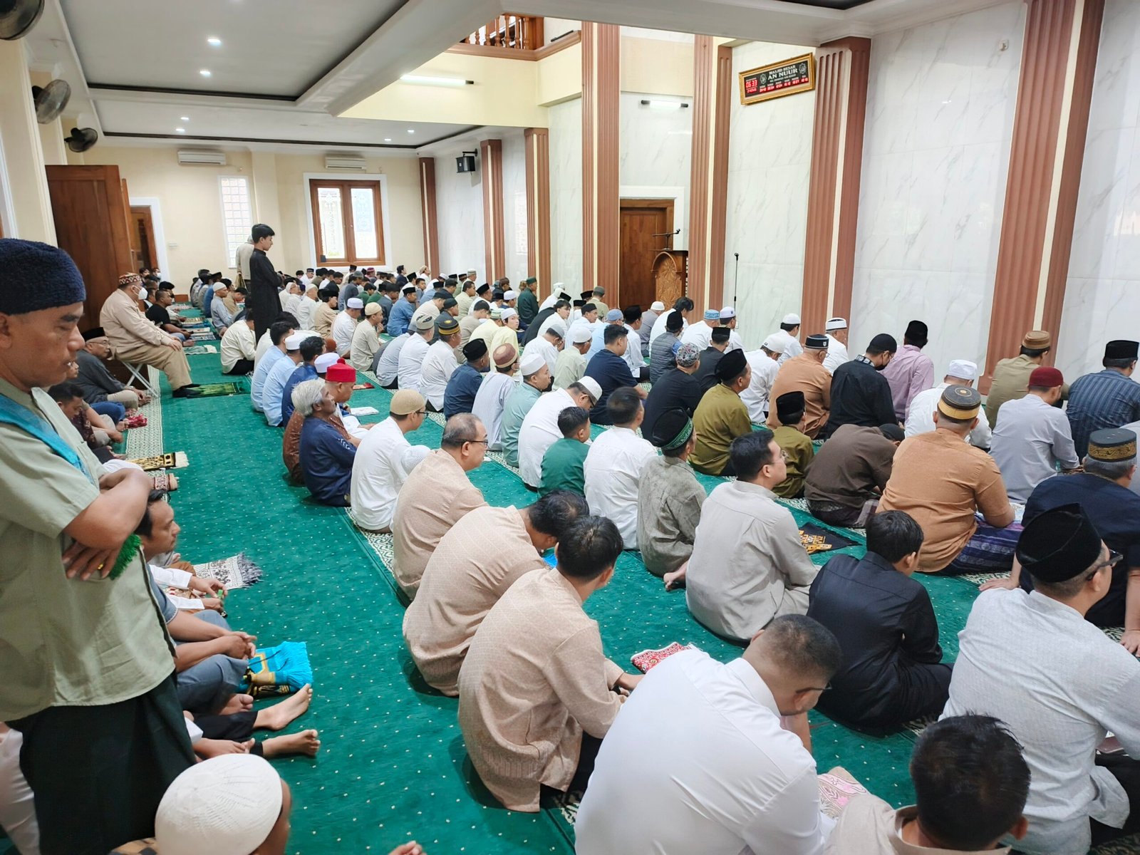 Ratusan jamaah shalat Idul Fitri terlihat berbondong – bondong memadati masjid besar An Nuur untuk menunaikan shalat Ied mulai dari anak – anak, remaja hingga para orang tua, bertindak sebagai Khotib dan Imam, Dr Salahuddin El Ayyubi, LC.MA.