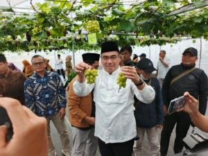 BOGOR, KORAN INDONESIA – Rektor IPB University Dr Alim Setiawan panen buah anggur disela kegiatan silaturahmi dan buka puasa, bersama awak media di kebun percontohan Agribusines Technology Park (ATP) Cikarawang Bogor Jumat, 06/03/2026.