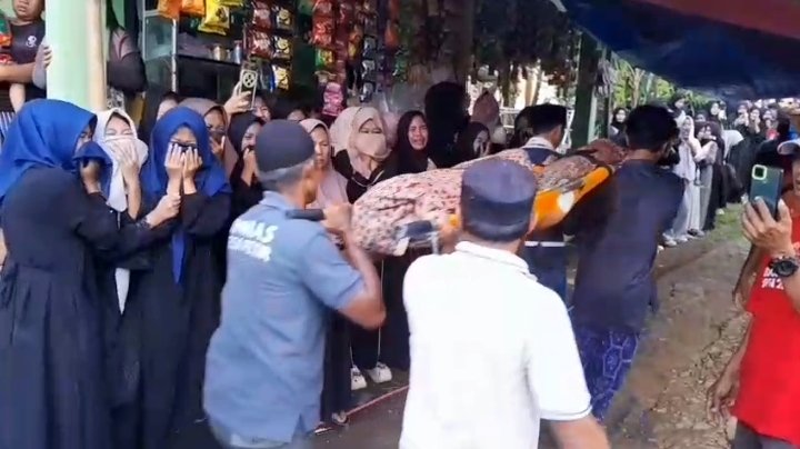 ‎Jenazah korban A setibanya di rumah duka disambut Isak tangis keluarga, t‎eman-teman korban, para guru, kerabat dan tetangga. Turut menyambut kedatangan jenazah korban, Kepala Desa Petir H Sukardi beserta jajaran, didampingi Babinkamtibmas dan Babinsa desa Petir pada Sabtu, 18/04/2026